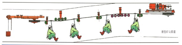 猴車,正式全稱為礦山架空乘人索道,主要用于地下礦山輔助運(yùn)輸工人.猴車將鋼絲繩安裝在驅(qū)動(dòng)輪、托繩輪、壓繩輪、迂回輪上并經(jīng)張緊拉緊裝置后,由驅(qū)動(dòng)裝置輸出動(dòng)力帶驅(qū)動(dòng)輪和鋼絲繩運(yùn)行,從而實(shí)現(xiàn)輸送礦工的原理。用架空乘人裝置來(lái)輸送礦工,其目的是縮短礦工上下井的路途時(shí)間,減輕礦工上下井的體能消耗。